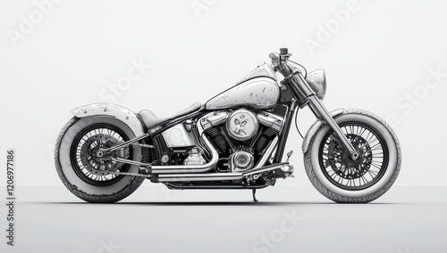 © adri, Obraz premium Sleek white custom motorcycle, side view. (1)