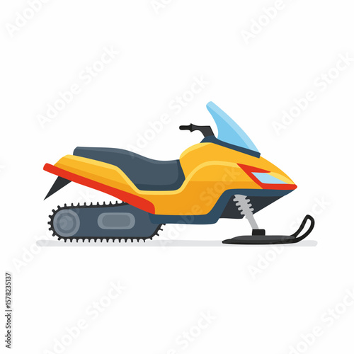 Naklejka premium Sleek Yellow Snowmobile with Blue Windshield and Detailed Track Design