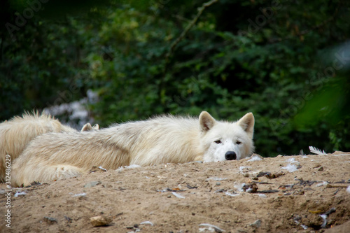 © Lucie, Naklejka premium Sleeping arctic wolf. Canis lupus arctos.