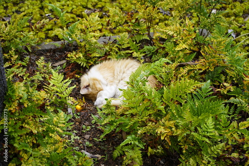 © guentermanaus, Fototapeta premium Sleeping cat in the Botanical Garden of Funchal, Madeira – Portugal.