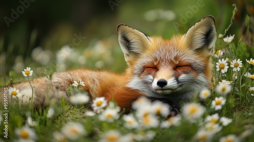© Sandu, Fototapeta premium Sleeping Fox Among Daisies