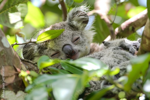 © denklim, Fototapeta premium Sleeping Koala Bear Cub In Australian Rainforest Canopy