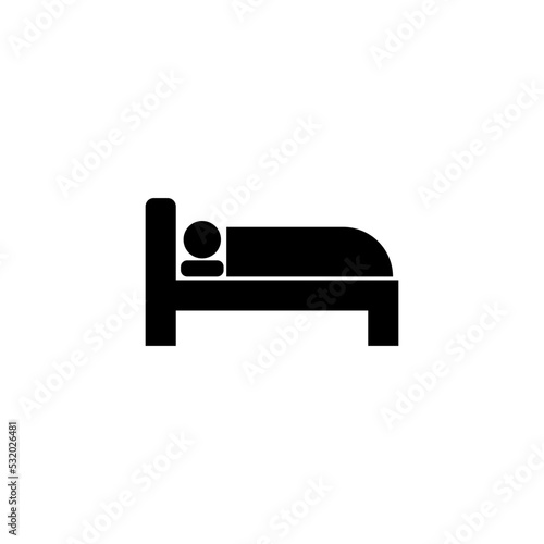 © Valentyna, Obraz premium Sleeping, Man Sleep in Bed, Hospital. Flat Vector Icon illustration. Simple black symbol on white background. Sleeping, Man Sleep in Bed, Hospital sign design template for web and mobile UI element.