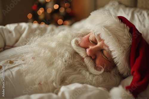 © Sandris Veveris, Obraz premium Sleeping Santa in Cozy Bed on Christmas Eve