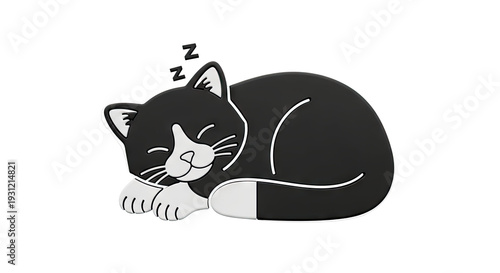Fototapeta premium Sleeping Tuxedo Cat Illustration