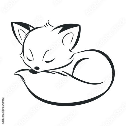 © Karina, Fototapeta premium Sleepy fox curled up in a cozy position for relaxation