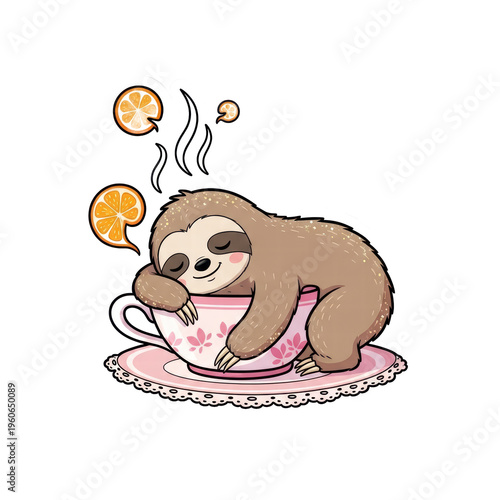 © Mai, Fototapeta premium Sleepy sloth cuddled inside teacup