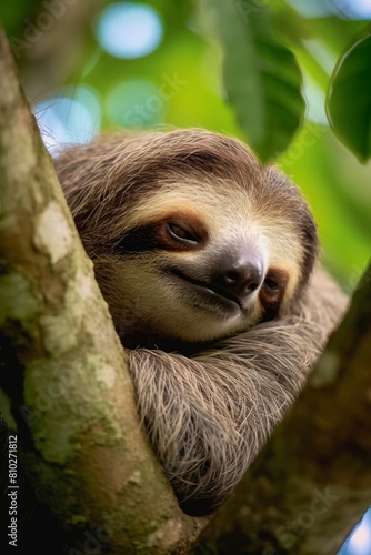 © Balaraw, Fototapeta premium Sleepy sloth resting in tree