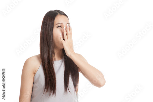 © halfbottle, Fototapeta premium Sleepy young Asian woman yawn