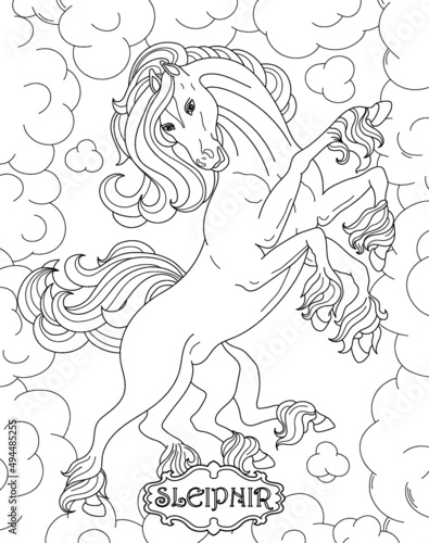 Naklejka premium Sleipnir.Coloring book for adults. Scandinavian mythology. Black and white...