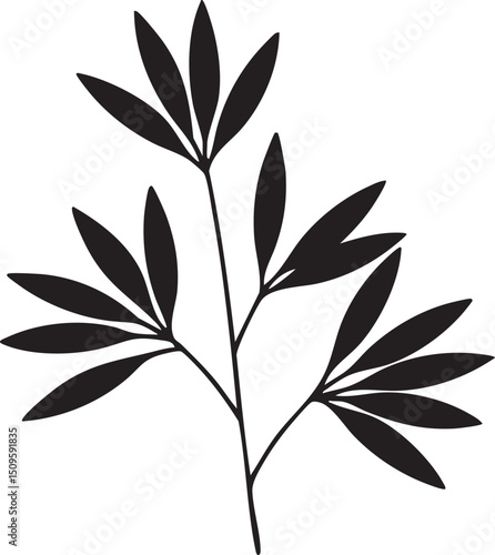 © Rysak, Naklejka premium slender branch displays delicate dark leaves against a white background.