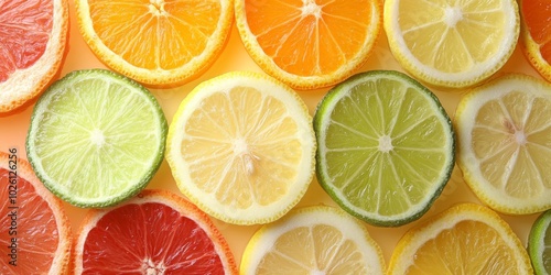 Fototapeta premium Sliced Citrus Fruits Including Lime, Lemon, and Orange for Healthy Eating