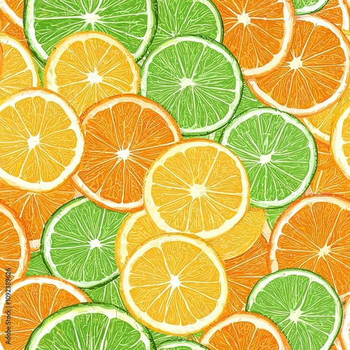 Fototapeta premium Sliced Slices Pile Collage of Lemons and Limes Seamless Food Pattern Texture