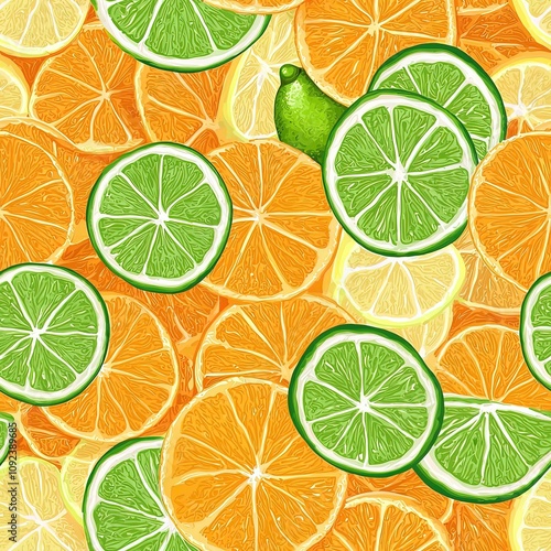 Fototapeta premium Sliced Slices Pile Collage of Lemons and Limes Seamless Food Pattern Texture