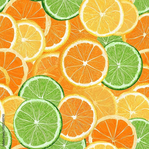 Fototapeta premium Sliced Slices Pile Collage of Lemons and Limes Seamless Food Pattern Texture