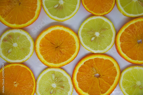 © Olena, Obraz premium slices of orange and lemon on white, looks like a background