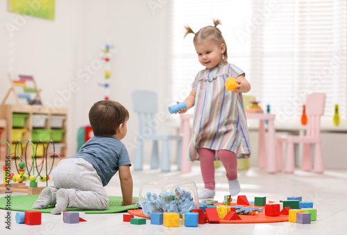 Fototapeta premium Śliczne małe dzieci bawiące się razem w pokoju