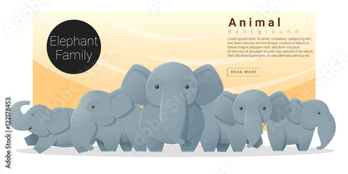 Obraz premium Śliczne tło rodziny zwierząt ze słoniami, wektor, ilustracja