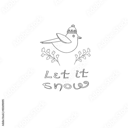 © Graphicsnice, Fototapeta premium Śliczne zimowe ptaszki z napisem Let It Snow