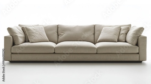 © Boonnam Burart, Obraz premium Slim-profile sofa placed symmetrically in a white-walled interior with soft shadows