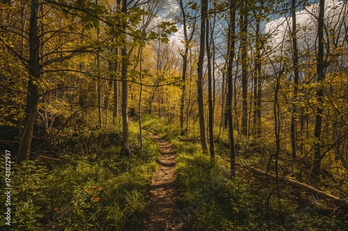© AkuAku, Fototapeta premium Slim woodland path during springtime