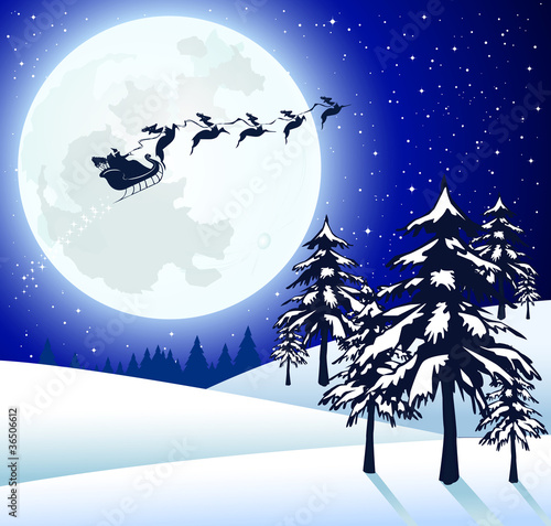 © carmela45, Naklejka premium slitta di babbo natale nel cielo stellato