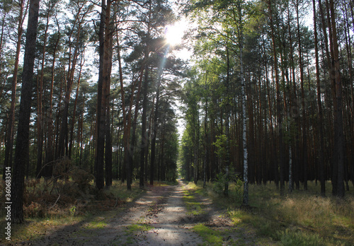 © Aleksandra, Fototapeta premium Słońce przedzierające się przez drzewa.