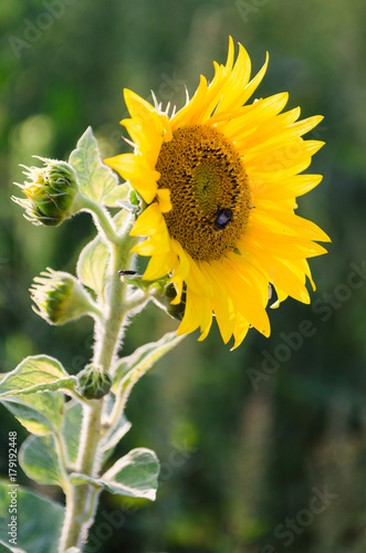 Fototapeta premium Słoneczniki rosnące na polu jesienią.