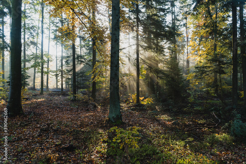 © Jakub, Fototapeta premium Słoneczny las o poranku