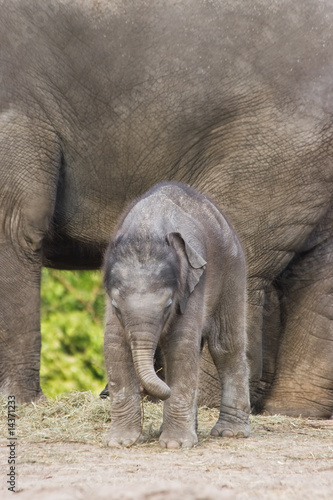© Colette, Fototapeta premium Słonie azjatyckie - duża mama, małe dziecko