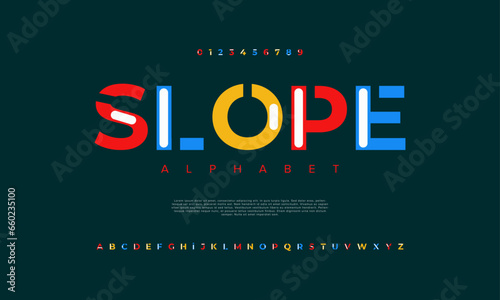 © Kiki, Obraz premium Slope creative modern urban alphabet font. Digital abstract moslem, futuristic, fashion, sport, minimal technology typography. Simple numeric vector illustration