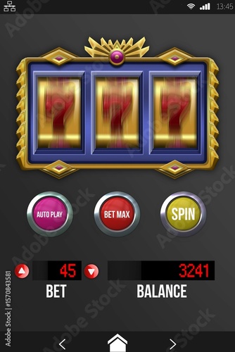 © vectorfusionart, Naklejka premium Slot machine app on mobile display