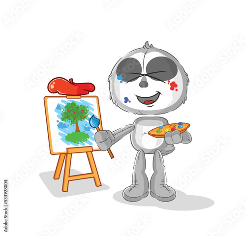 Fototapeta premium sloth artist mascot. cartoon vector