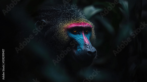Fototapeta premium Sloth Bear Mandrill Hybrid: Colorful Creature, Exotic Animal Fusion, Unique...