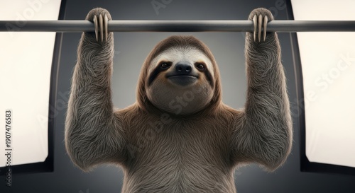 © Khaisan, Obraz premium Sloth Doing Pull Ups on Bar