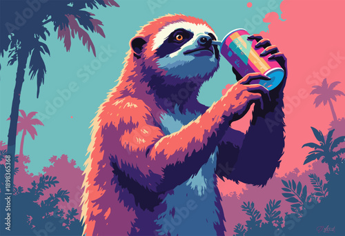 © Sabry, Fototapeta premium Sloth drinking energy drink vibrating Rush Hour Flat