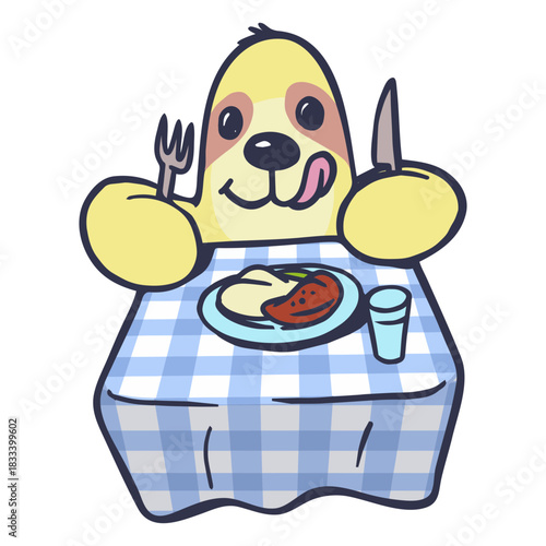 © Vexels, Obraz premium Sloth eating on table cartoon