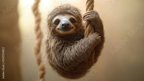 © SI3ee, Naklejka premium Sloth hanging from rope, zoo enclosure