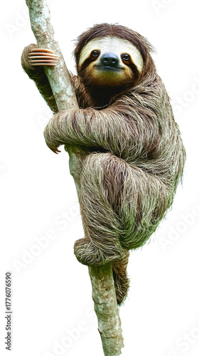 © Syahrul, Fototapeta premium Sloth hugging tree trunk in vertical pose