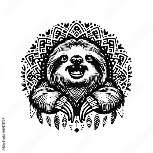 Obraz premium Sloth in bohemian black and white silhouette illustration -