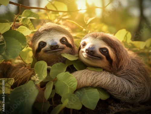 Fototapeta premium Sloth in its Natural Habitat, Wildlife Photography, Generative AI