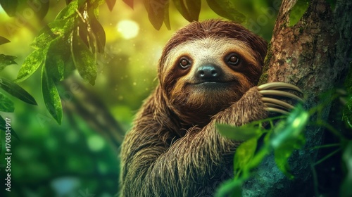 Fototapeta premium Sloth in lush tropical rainforest