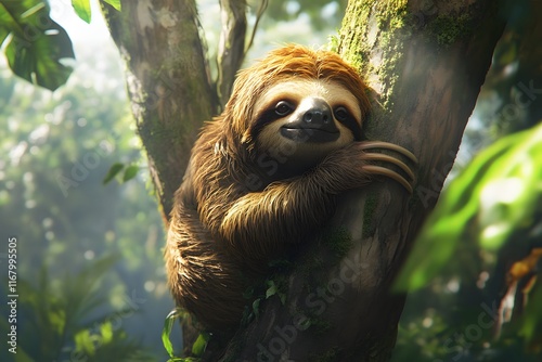 © Faqih, Naklejka premium Sloth in Rainforest Canopy: A Digital Painting