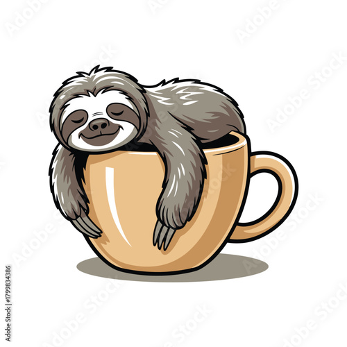 © Rumana, Naklejka premium Sloth laying on coffee cup