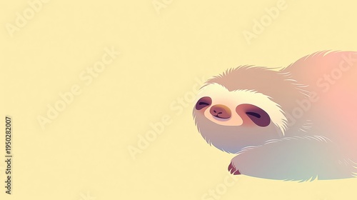 © Kristina, Fototapeta premium Sloth lying down and sleeping with relaxed expression on soft pastel yellow background