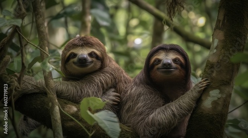 © Kateryna Kordubailo, Fototapeta premium Sloth on a tree. Generative AI
