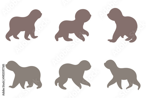 Naklejka premium Sloth Silhouette Icon Set. Animal Illustration Design