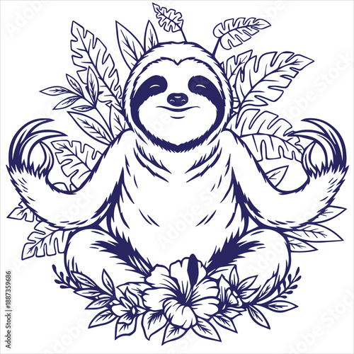 © Creative Art, Fototapeta premium Sloth With Flowers SVG