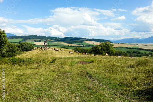 Fototapeta premium Slovak rural landscape with cows and meadows