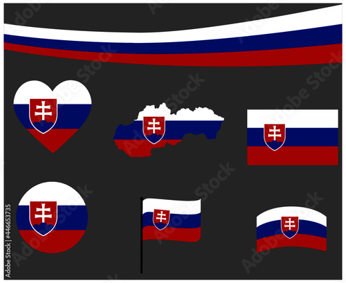 Naklejka premium Slovakia Flag Map Ribbon And Heart Icons Vector Illustration Abstract Design Elements collection